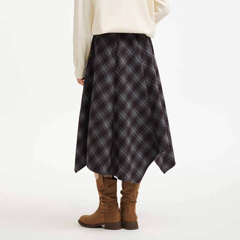 淘宝热风女士格子半身裙2025年冬季新款不规则设计感复古格纹文艺半裙
