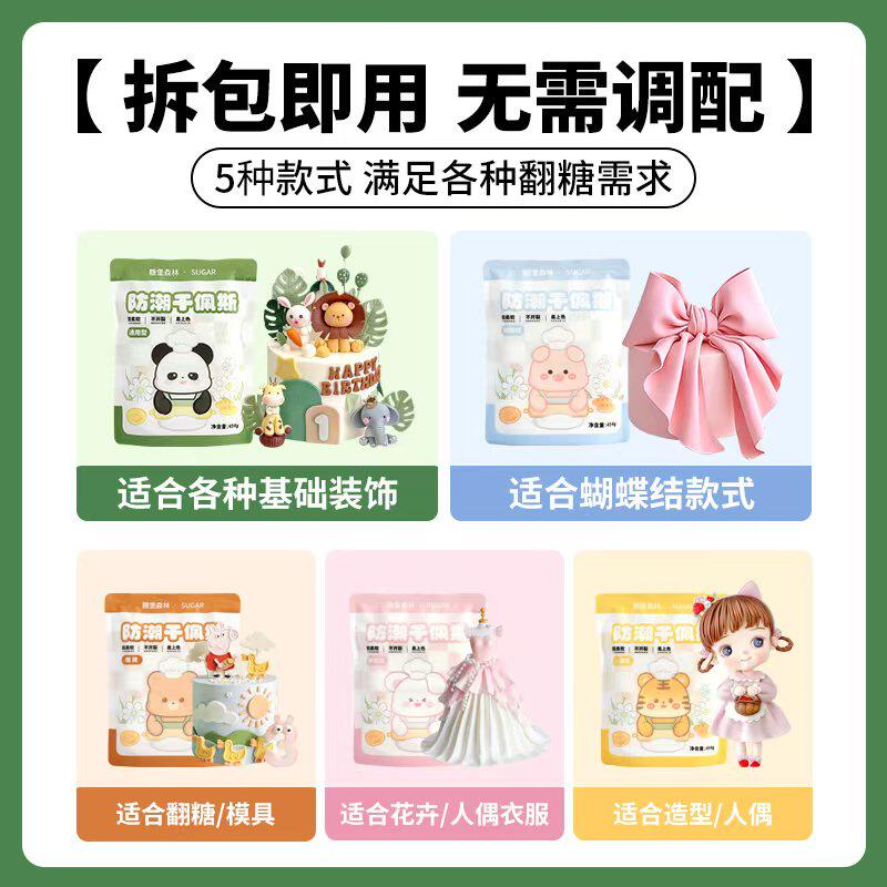 淘宝糖堡森林可食用防潮干佩斯蛋糕装饰蝴蝶结糖牌人偶塑型翻糖膏454g