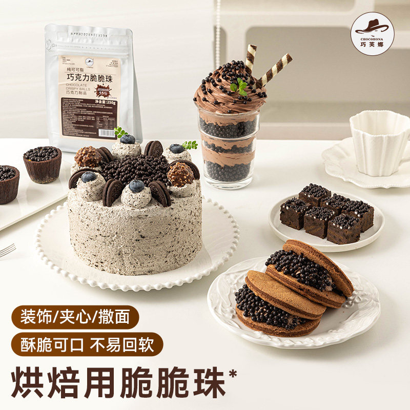 天猫巧克力脆珠香脆珍珠焦糖度思黑白豆球蛋糕装饰烘焙用奶茶甜品500g