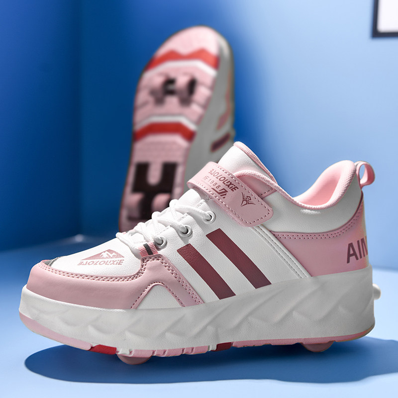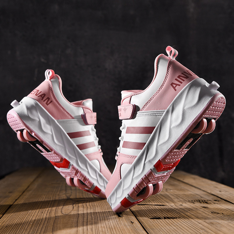 2026年新款女童隐形四轮暴走鞋,集时尚与趣味于一体,专为活泼好动的学生设计。鞋身采用轻盈透气材质,搭配隐形可收缩轮滑系统,一键切换行走与滑行模式,安全便捷。四轮稳定结构搭配防滑耐磨轮,确保滑行平稳,适合室内外多种场景。炫酷外观融合流行色彩,兼顾舒适脚感与潮流造型,让孩子在校园与街头自由穿梭,畅享“飞行”乐趣。内置安全锁止装置,家长更放心。既是日常运动鞋,又是趣味轮滑装备,一鞋双用,激发孩子运动天性,是2026年儿童 footwear 的创新之选。