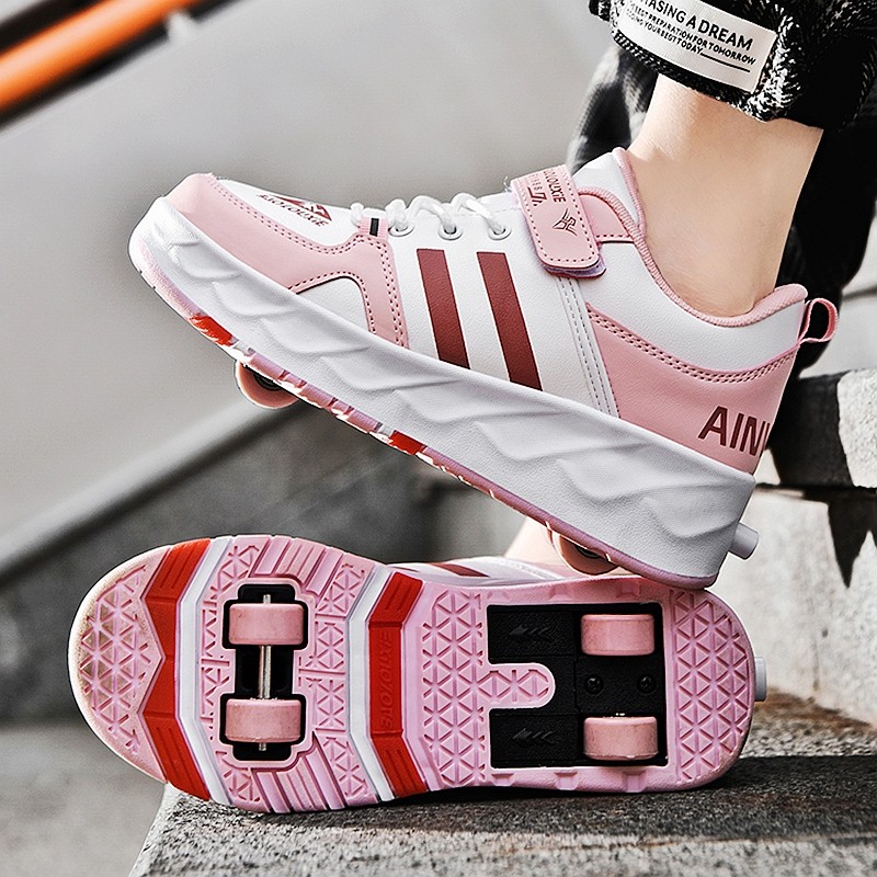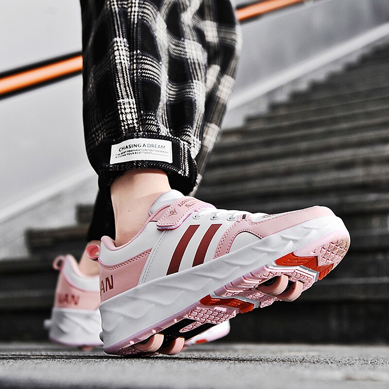 暴走鞋男童新款隐形四轮自动收缩女童运动轮滑鞋儿童四轮飞行鞋