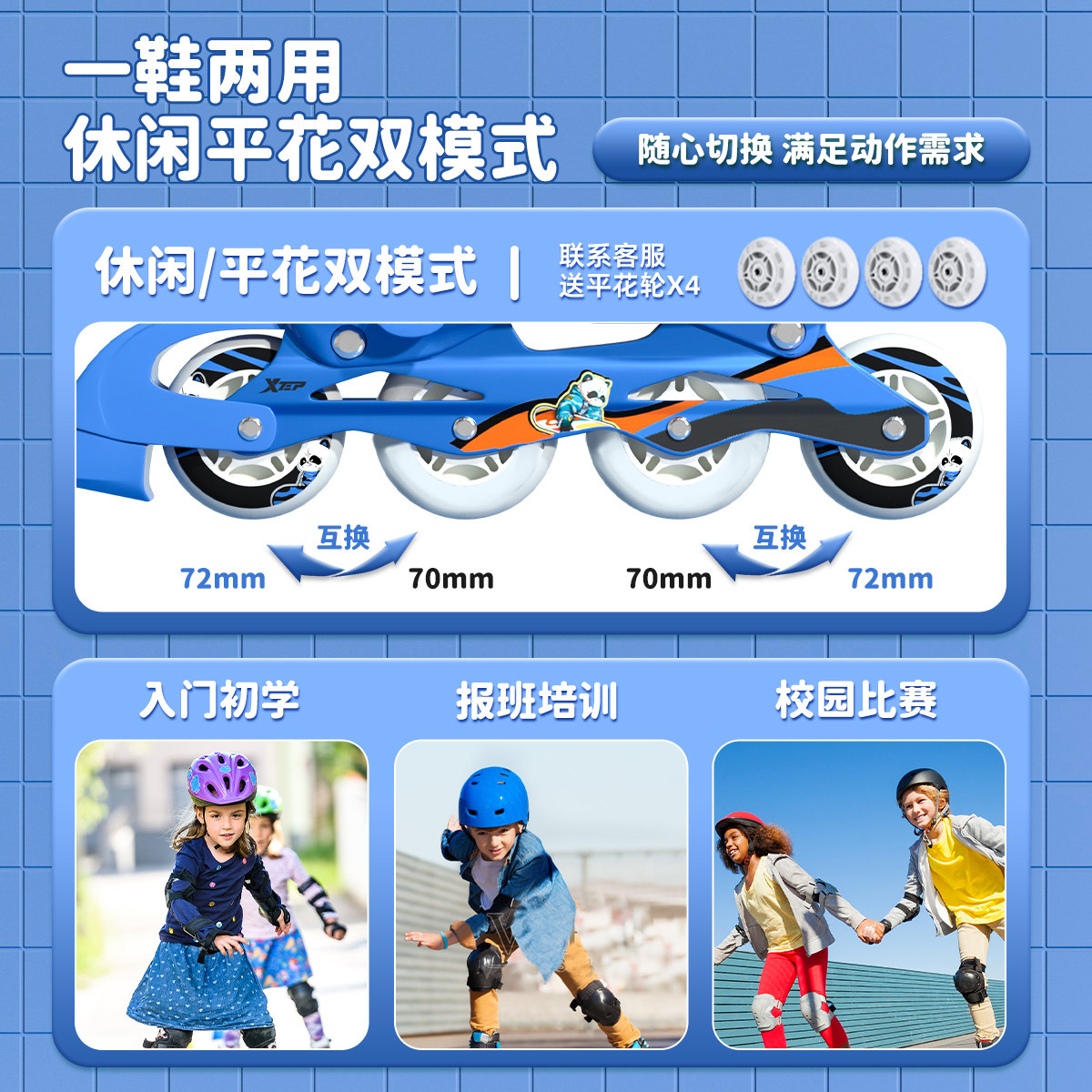 天三角轮溜冰鞋儿童初学者全套装旱冰轮滑直排双排女童男童小孩可调