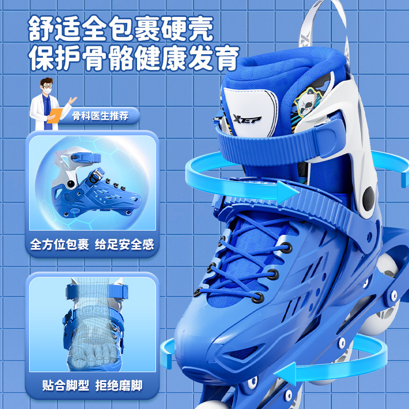 特步溜冰鞋女童儿童轮滑鞋初学者男孩男童女孩旱冰滑轮全套装滑冰