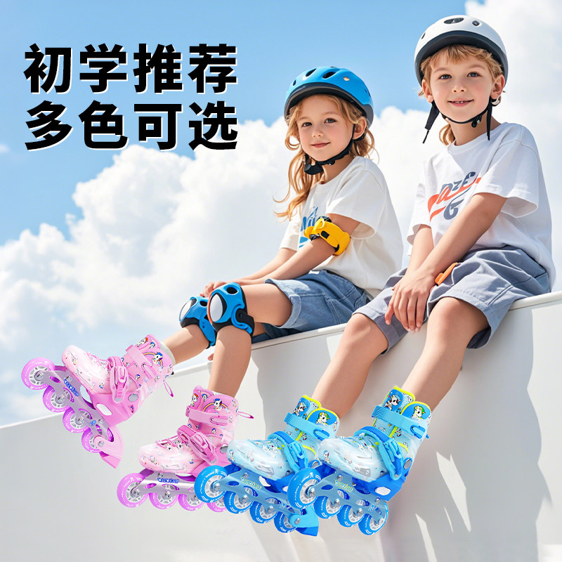 溜冰鞋儿童全套装旱冰滑冰鞋男童女童轮滑鞋女孩直排轮初学者可调
