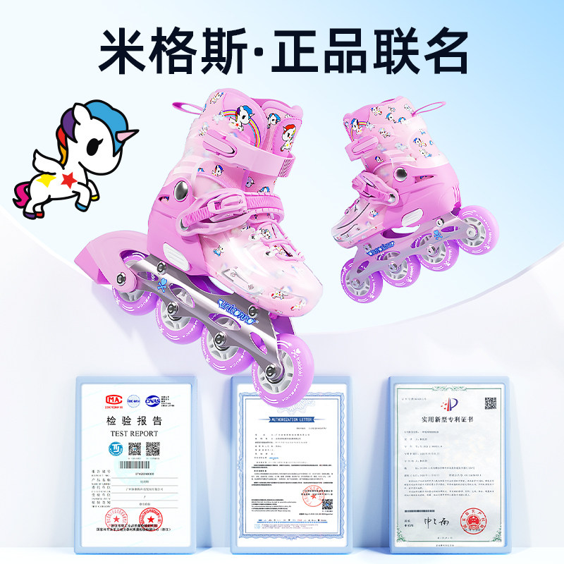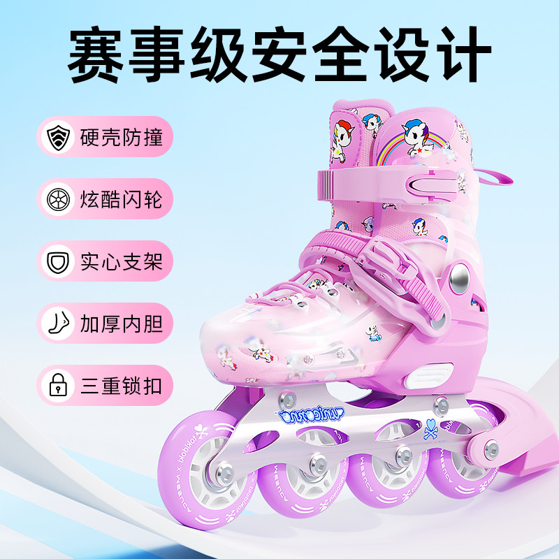 天猫独角兽儿童轮滑鞋溜冰鞋女童初学者滑轮滑冰旱冰男孩6-12岁直排轮