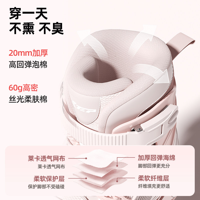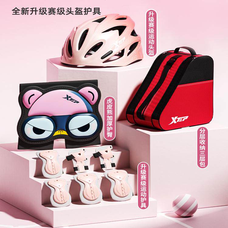 特步轮滑鞋专为儿童与初学者设计,兼顾安全、舒适与时尚。采用高强度PP材质外壳,有效保护脚踝,搭配可调节尺码设计,适配不同脚型,陪伴孩子成长。鞋身轻盈透气,内里柔软缓震,长时间滑行也不易疲劳。搭配高弹性PU轮,抓地力强、滑行稳定,适合室内外多种地面。全套装备包含护膝、护肘、头盔,全面守护初学者的安全。男女童通用设计,色彩活泼亮眼,激发孩子运动兴趣。无论是小学生日常练习还是成人休闲滑行,特步轮滑鞋都是理想选择,让滑行更安全、更快乐。