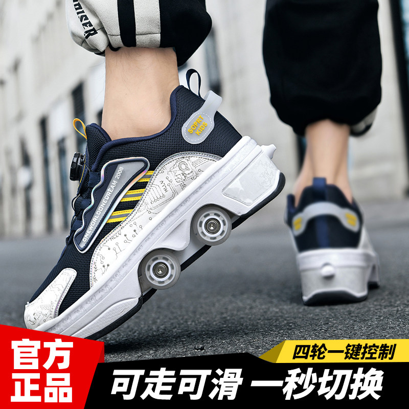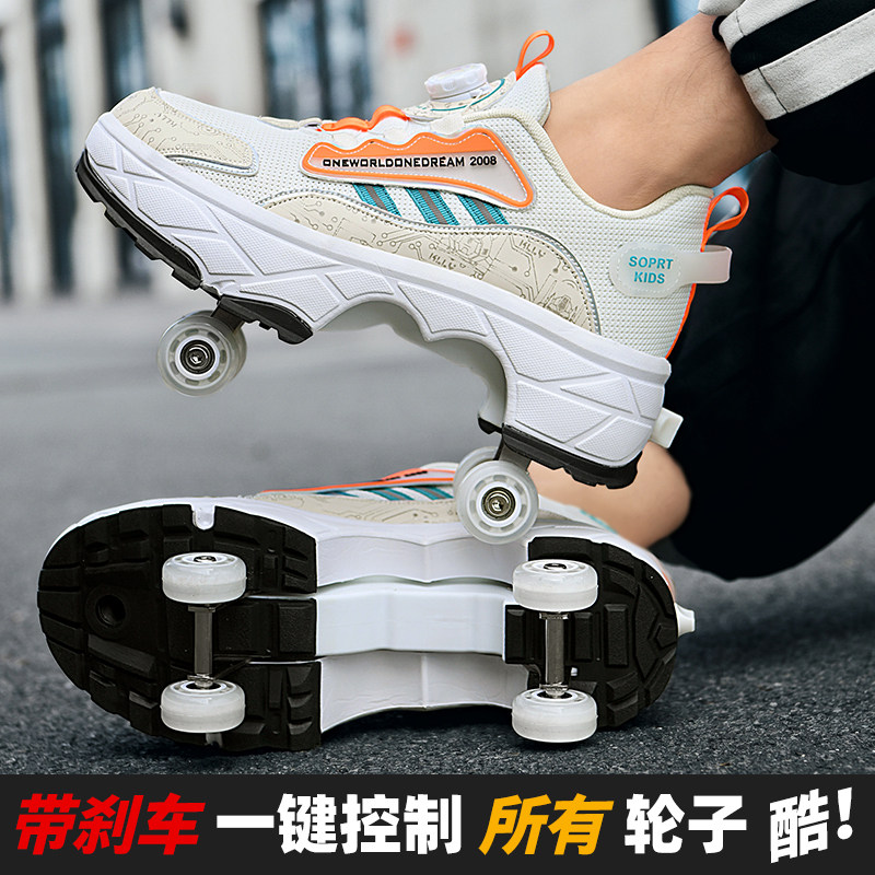 儿童暴走鞋皮面男童轮子鞋网面女童溜冰鞋运动双轮滑鞋四轮爆走鞋