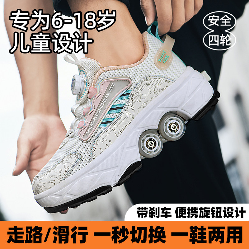 女童暴走鞋2025新款儿童运动溜冰鞋四轮隐形可收缩女孩学生轮滑鞋