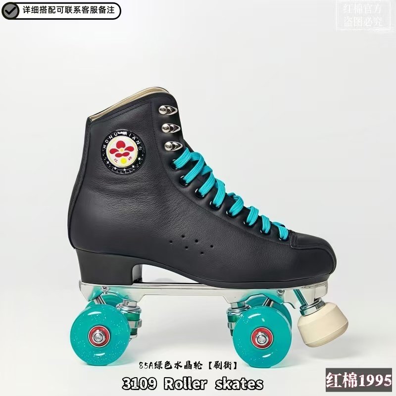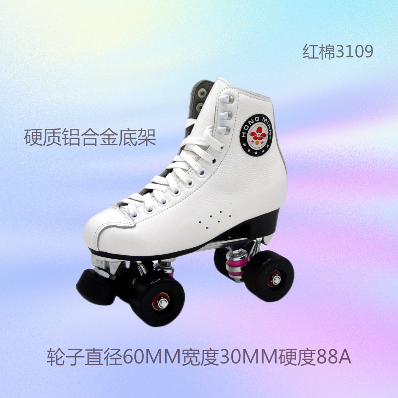 包邮红棉3108双排溜冰鞋旱冰鞋滑冰鞋男女成人四轮轮滑鞋头层牛皮