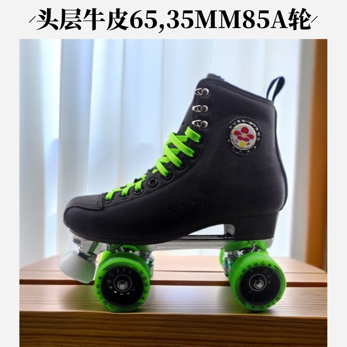 淘宝25版加强型双排旱冰鞋 溜冰鞋 轮滑鞋 头层牛皮成人男女溜冰鞋