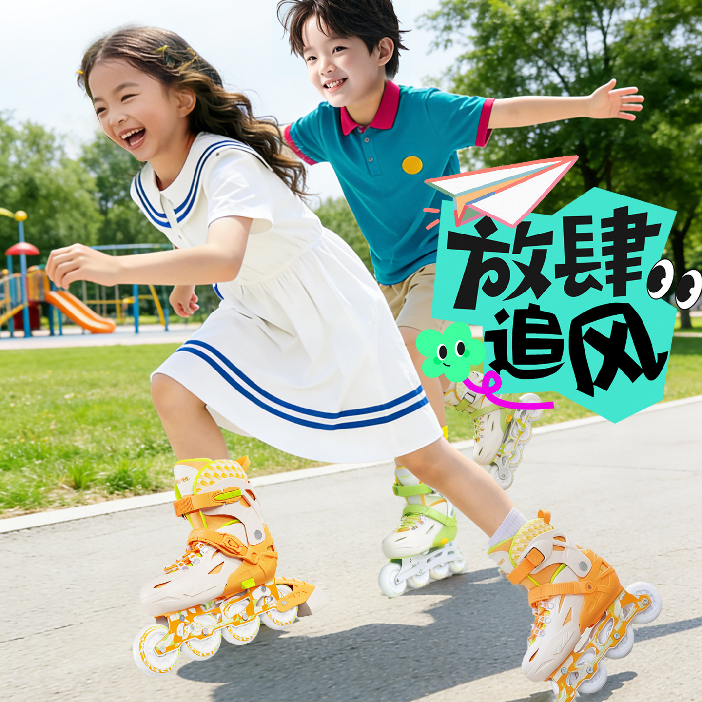 三角轮溜冰鞋儿童初学者全套装旱冰轮滑直排双排女童男童小孩可调