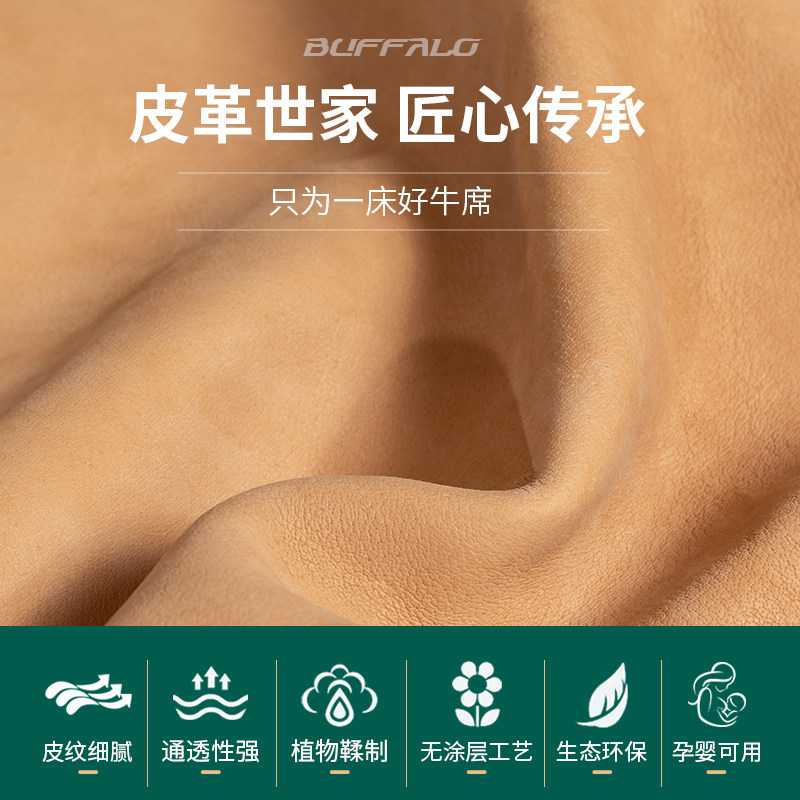 YOMO/原牧头层水牛皮凉席采用天然头层水牛皮制成,经无铬鞣工艺处理,全程使用清水鞣制,杜绝重金属污染,安全环保。通过国家A类母婴级标准认证,亲肤透气,适合婴幼儿及敏感人群使用。席面保留牛皮天然纹理,柔软舒适,具有良好的散热性与吸湿性,夏日使用清凉不闷热。生态环保理念贯穿生产全程,兼顾健康与舒适。真皮材质耐用抗撕裂,久用不变形,是追求高品质健康生活家庭的理想选择。YOMO原牧致力于提供天然、安全、舒适的睡眠体验,让每一晚都安心清凉。