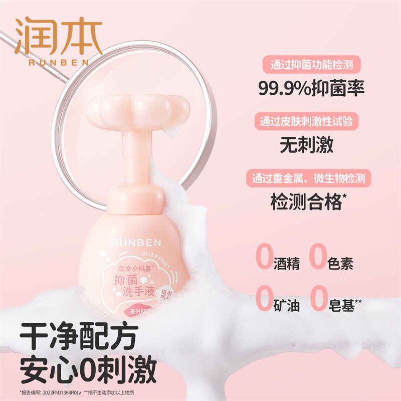 天猫润本小桃喜抑菌性能强儿童泡沫洗手液250ml*2瓶温和洁净