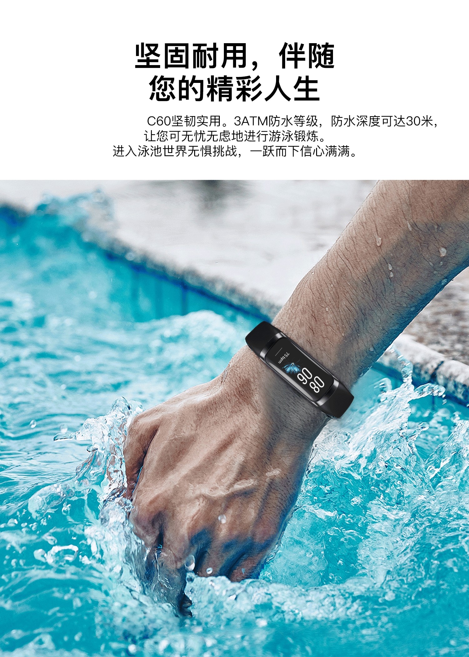 智能运动手环采用3ATM游泳级防水设计,可轻松应对日常洗手、雨水及游泳等场景,满足全天候佩戴需求。内置高精度传感器,实时监测步数、心率、血压等健康数据,帮助用户科学管理运动与身体状况。支持多种运动模式,精准记录卡路里消耗与运动轨迹。具备来电、短信及社交应用信息提醒功能,重要通知不错过。搭配长效续航与轻便舒适设计,无论是日常通勤还是户外运动,都能成为贴心的健康助手,让智能生活更便捷、更安心。