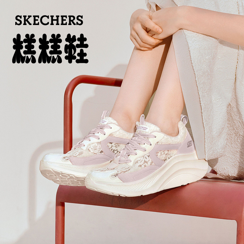 天猫斯凯奇糕糕鞋|蕾丝女鞋厚底休闲运动鞋增高薄款软底透气松糕鞋