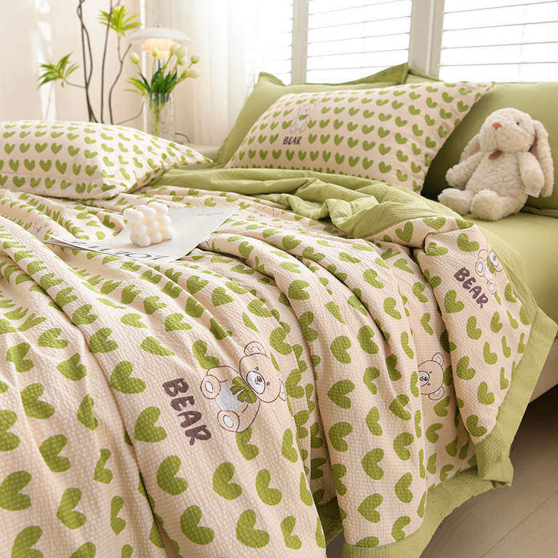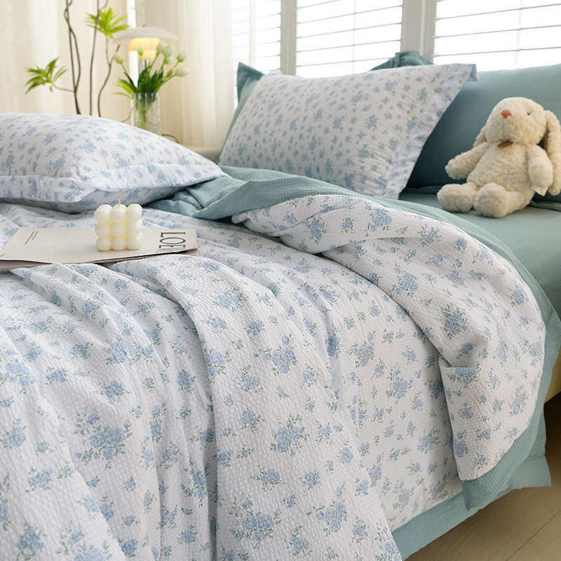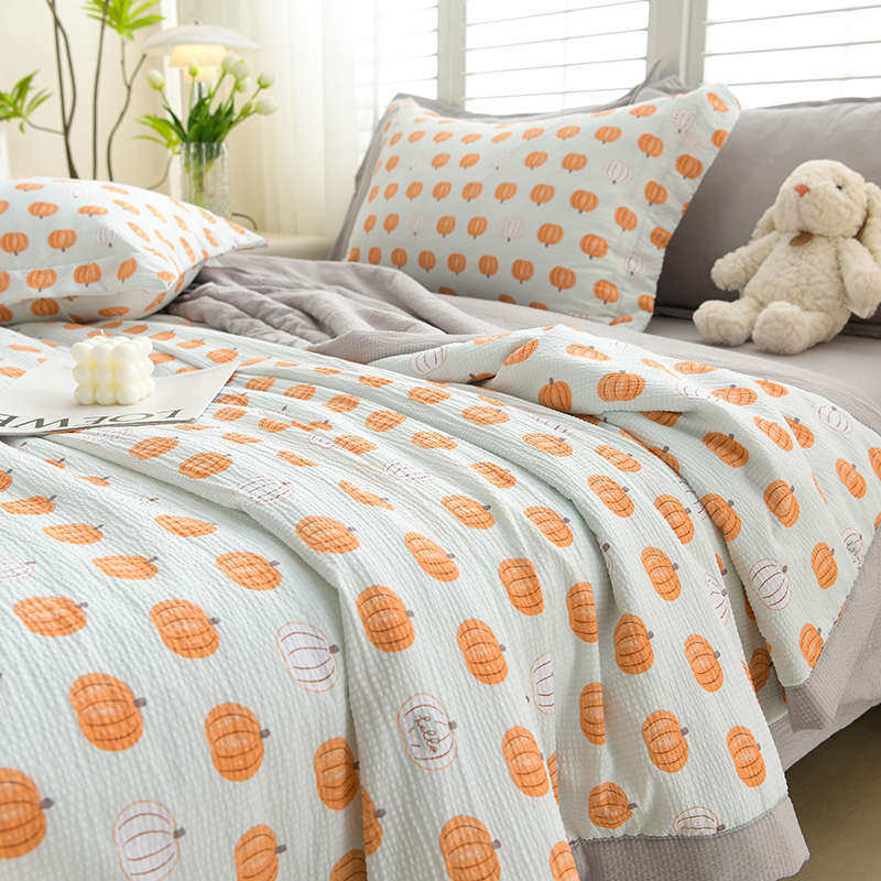 泡泡纱提花夏被四件套,采用优质泡泡纱面料,立体提花工艺,质感轻盈透气,带来清凉舒爽的夏日体验。独特的纤维结构赋予其天然凉感,触感丝滑,即使在炎热夏季也能保持干爽舒适,是空调房或自然环境下的理想选择。四件套包含被套、床单与枕套,简约雅致,适配多种家居风格。可机水洗设计,方便日常清洁,不易变形褪色,耐用易打理。薄款设计轻盈贴身,适合夏季使用,单双人规格可选,满足不同需求。无论是追求舒适睡眠,还是注重实用便捷,这款凉感夏被都是今夏的理想之选。