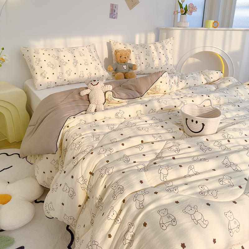 大豆纤维被子采用天然大豆蛋白纤维制成,亲肤柔软、透气吸湿,兼具蚕丝般的顺滑与棉的舒适。这款夏凉被轻盈蓬松,触感凉爽,非常适合夏季或空调房使用,同时具备良好的保暖性,春秋季节亦适用,实现四季皆宜。可机洗水洗设计,打理便捷,不易结团变形,耐用易护理。适用于单双人多种尺寸,学生宿舍、儿童房或家庭使用皆宜。环保健康,无刺激性气味,敏感肌人群也能安心使用。集舒适、实用与环保于一体,是现代家庭理想的四季被选择。