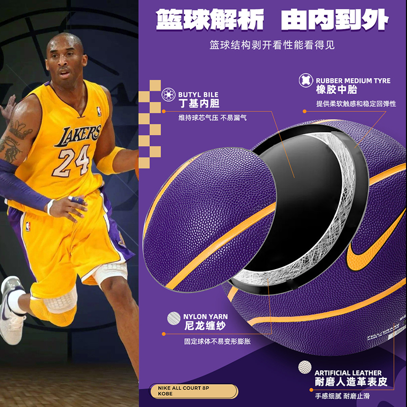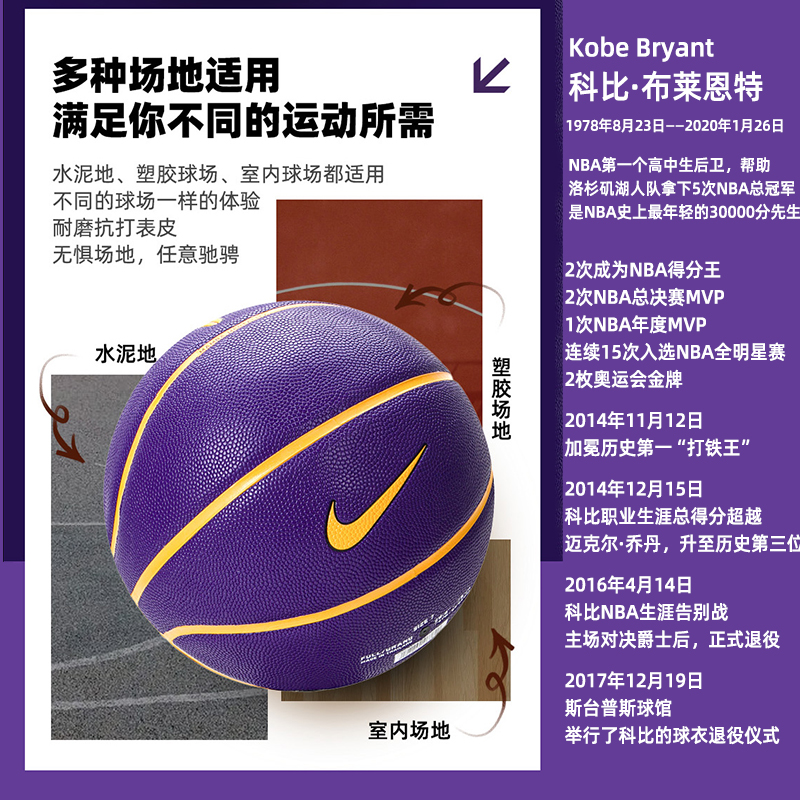 天猫Nike耐克篮球KOBE签名款官方正品科比7号球新款室内外比赛训练球