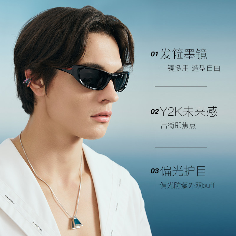 【严成玹&张婧仪同款】Cyxus发箍墨镜,融合时尚与实用,打造高级感出行体验。采用猫眼造型设计,线条流畅,复古中透出现代摩登气息,男女皆宜,轻松驾驭多种风格。镜框与发箍一体化设计,佩戴稳固舒适,解放双手,适合日常通勤、旅行拍照等多种场景。高品质UV400镜片,有效阻隔有害紫外线,保护双眼健康。轻盈材质结合精致工艺,彰显细节质感。无论是搭配休闲装还是时尚造型,都能 instantly 提升整体 look 的辨识度与格调,是明星与潮流达人出街的必备单品,演绎自信与优雅并存的都市风尚。