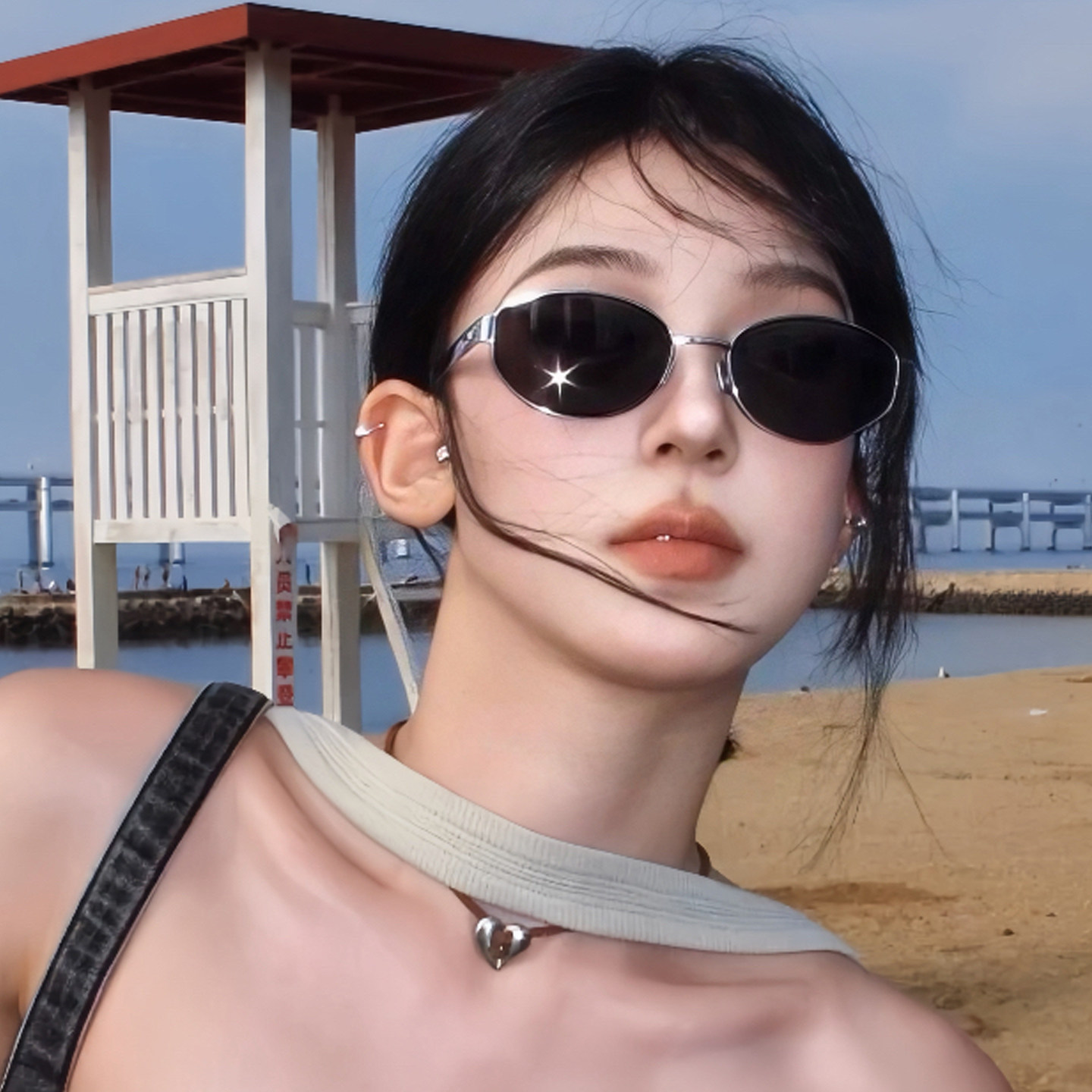 陌森眼镜墨镜女款防晒防紫外线窄框猫眼时尚百搭太阳镜男MS3077