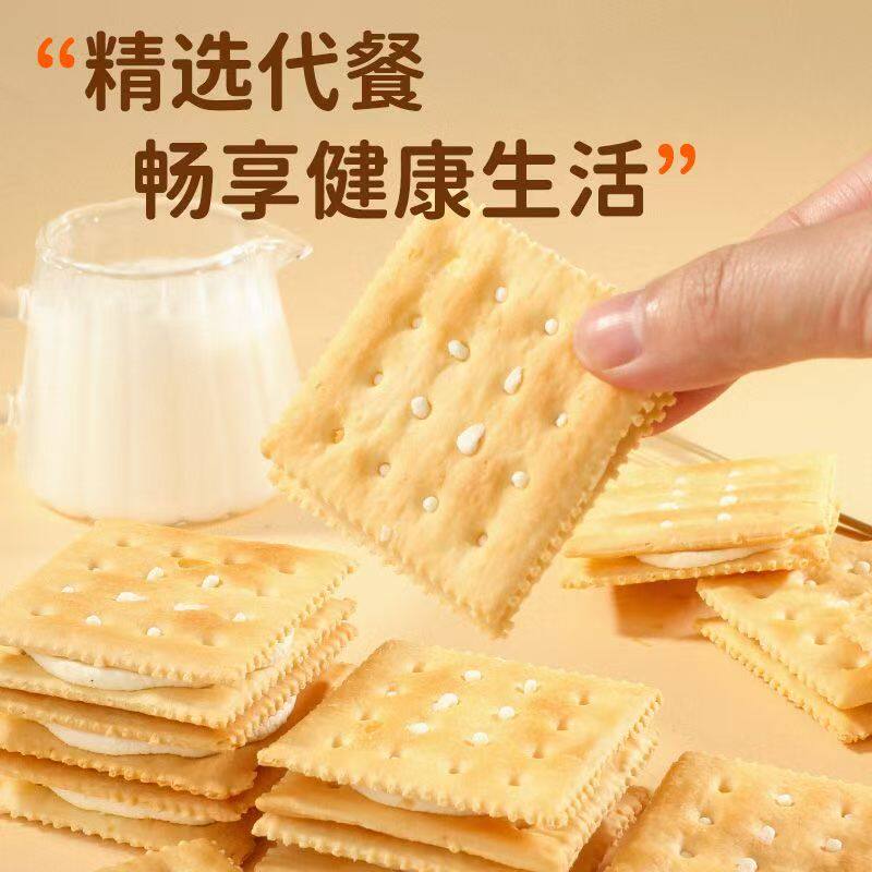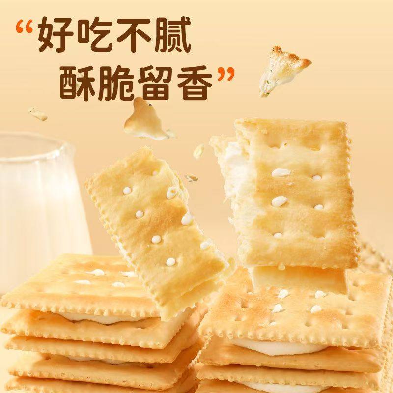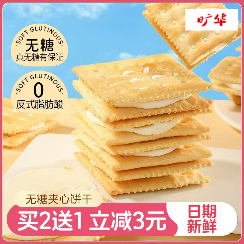 天猫旷华无糖苏打夹心饼干营养饱腹早餐食品酥脆网红下午茶休闲零食品