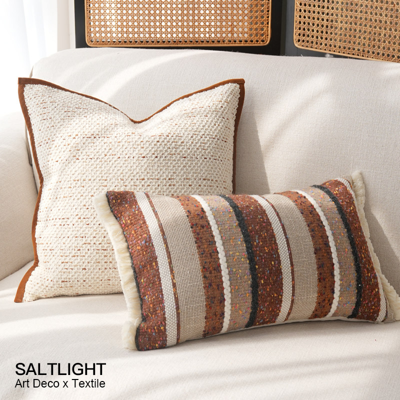 柏洛斯Crimson〖绯红〗轻奢高档编织纹绒布客厅沙发抱枕腰靠垫套