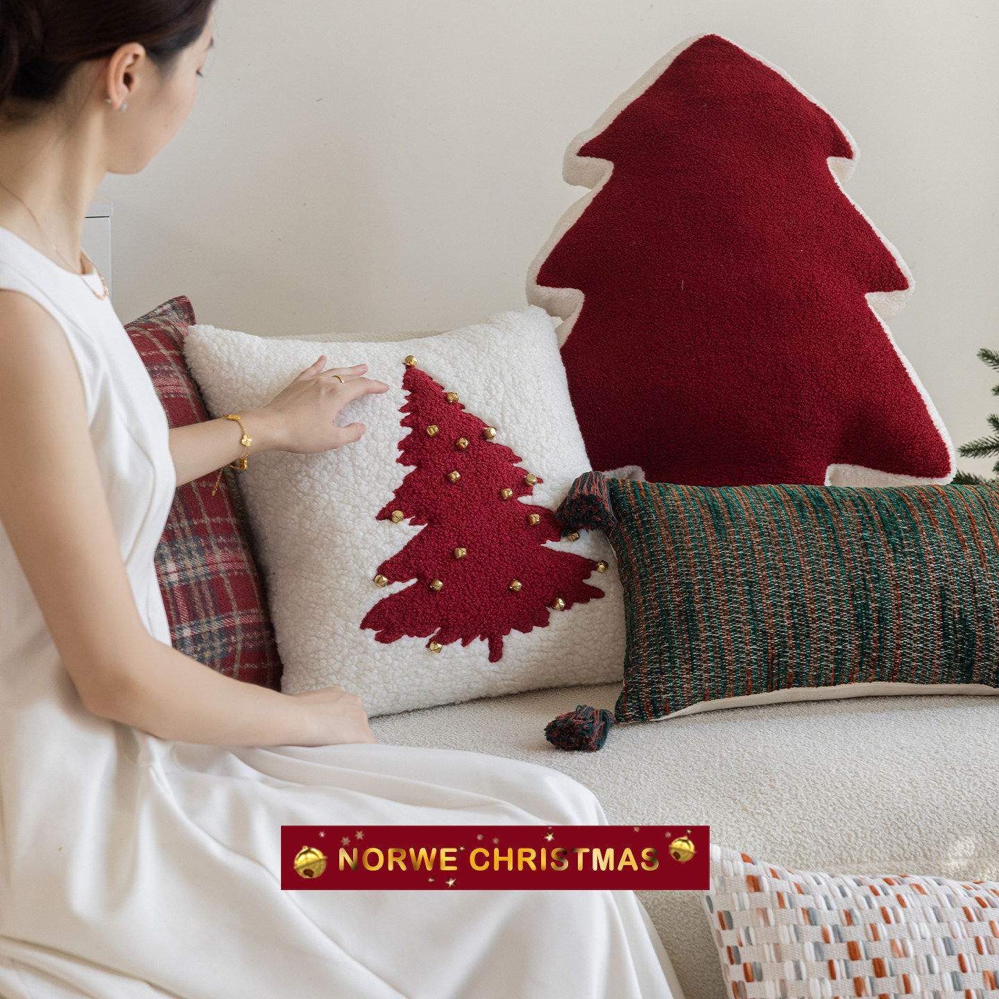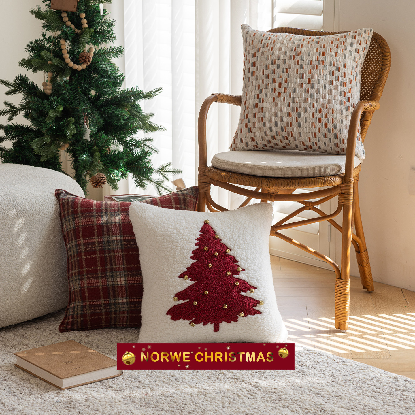 淘宝NORWE圣诞抱枕节日红客厅沙发靠垫套装饰品圣诞树抱枕套圣诞礼物