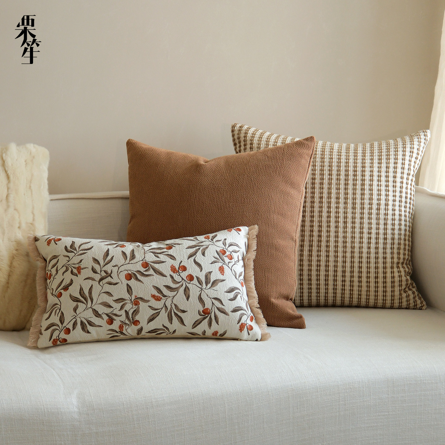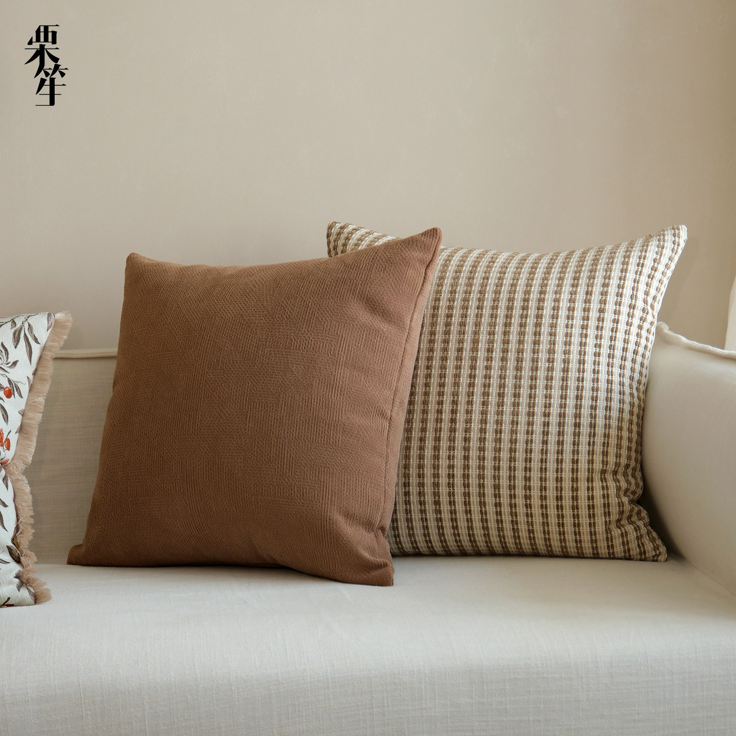 淘美拉德风抱枕棕色高级感沙发靠枕套含芯客厅意式床头靠背装饰靠垫