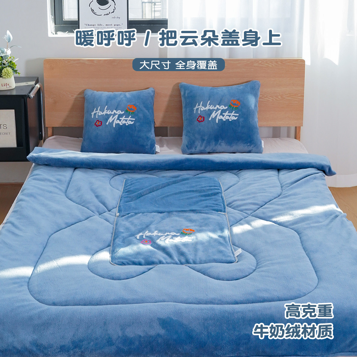 天猫加厚牛奶绒抱枕被子两用车载靠垫枕头办公室沙发折叠午睡被二合一