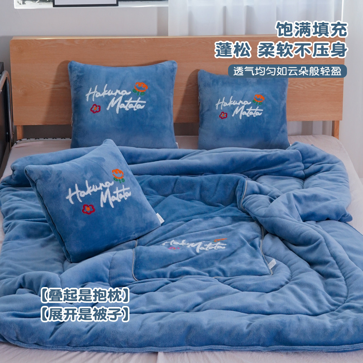 4斤1.8米宽纯棉全棉两用抱枕被子车载靠垫沙发办公室午休空调被毯