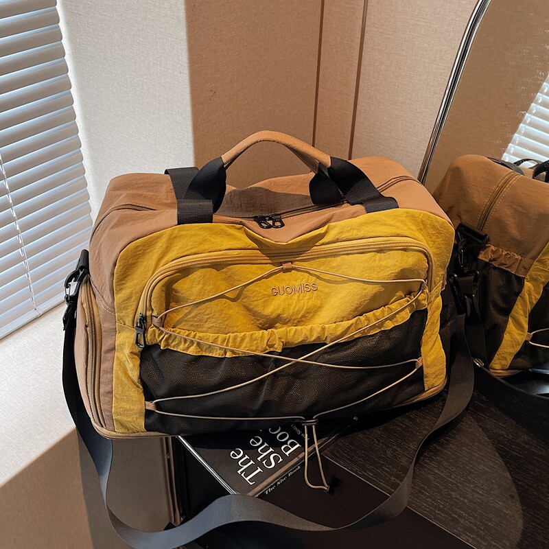 这款大容量手提旅行包,专为短途出行与运动健身设计,男女通用。采用轻便耐磨材质,减轻负重,提升携带舒适度。包内设有干湿分离仓,可独立存放湿衣物、运动鞋或洗漱用品,保持干爽整洁。多隔层收纳设计,轻松分类存放衣物、电子设备、证件等物品,取用便捷。提手加宽加厚,肩背舒适;侧边网袋可放水瓶或雨伞。无论是周末出游、健身训练,还是商务差旅,都能满足多样化需求。时尚简约外观,实用与美观兼具,是旅行与日常出行的理想伴侣。