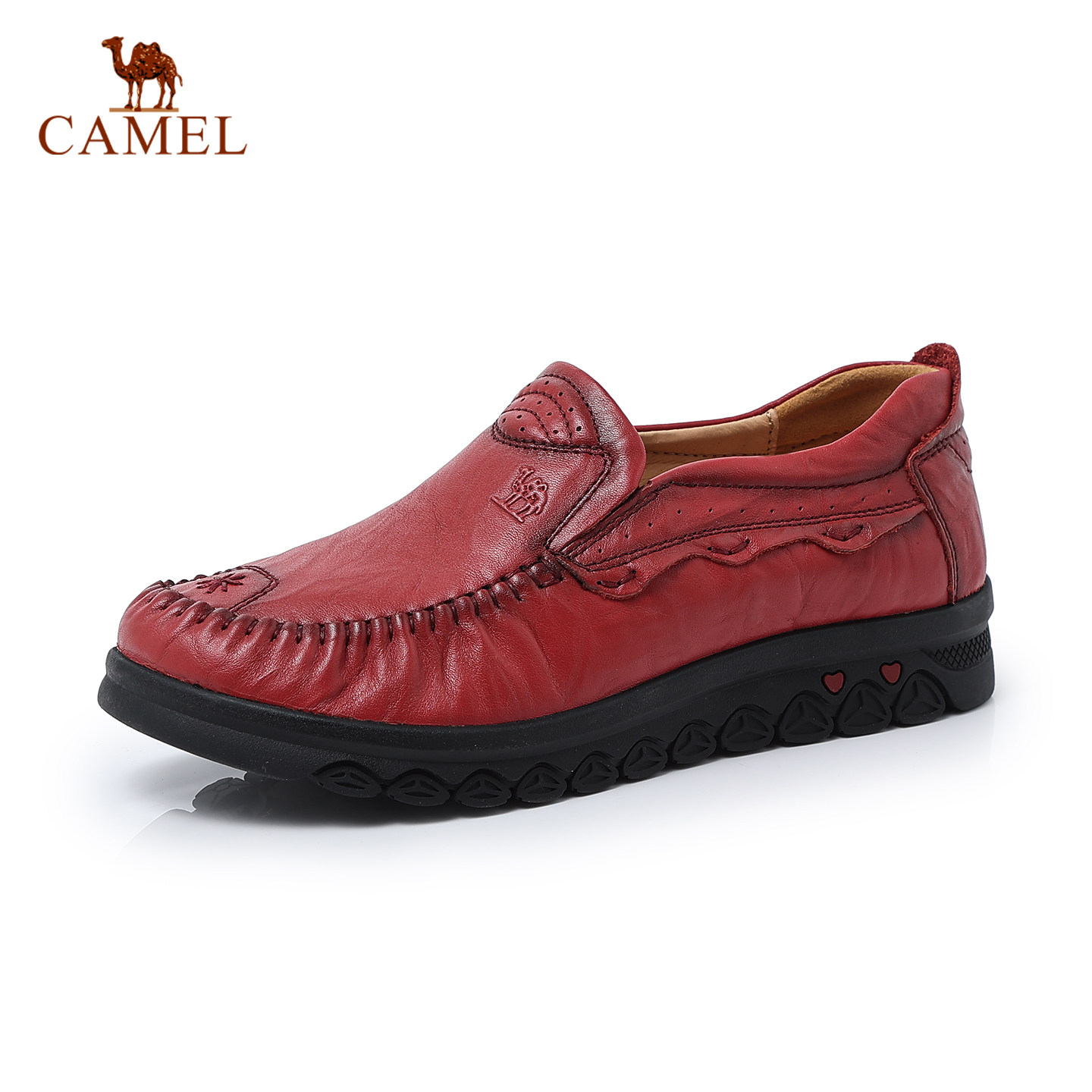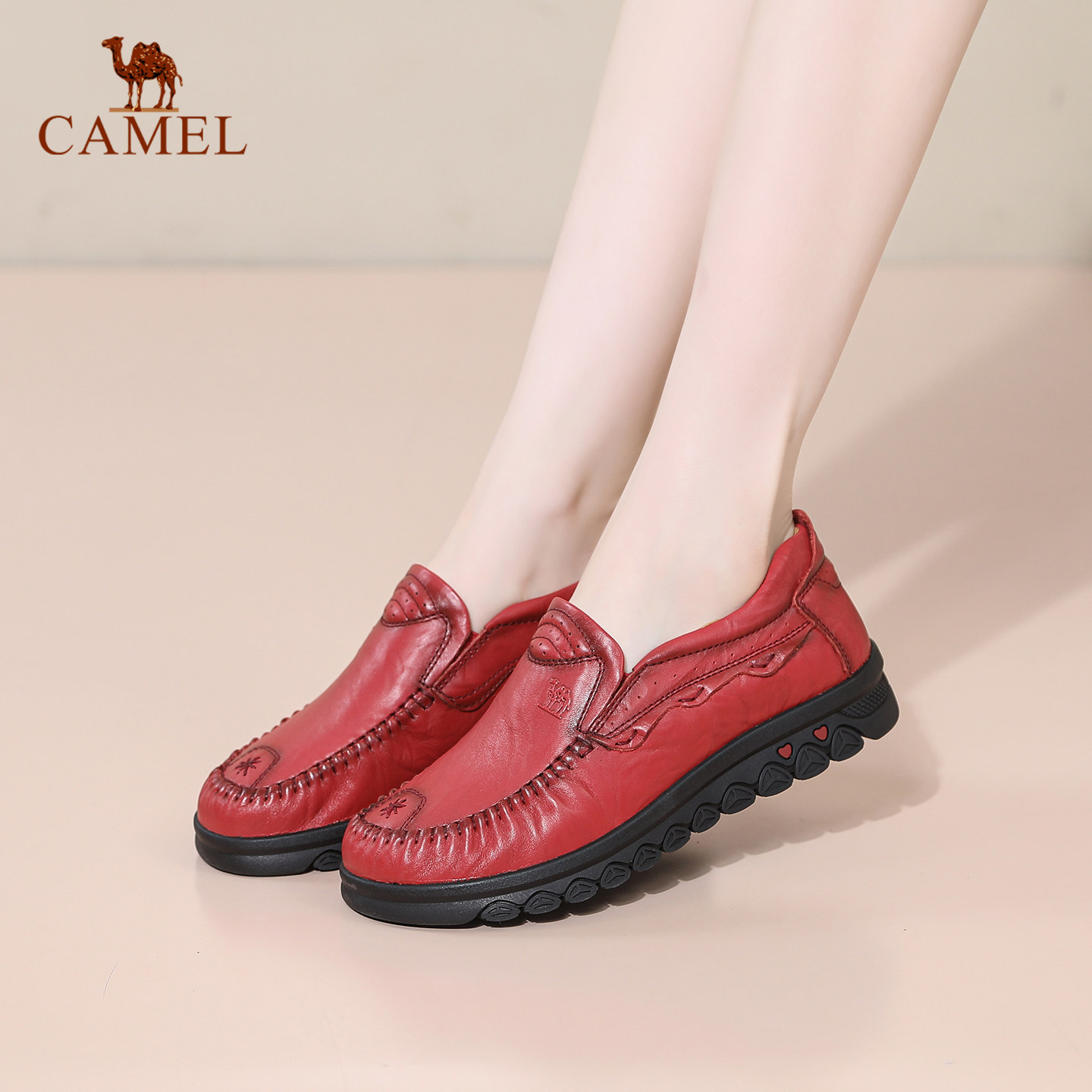 天猫骆驼女鞋26春季新款中老年妈妈鞋真皮舒适软底防滑厚底休闲皮鞋