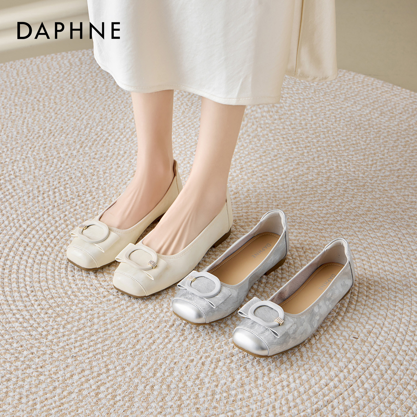 达芙妮乐福鞋女2026新款真皮单鞋平底女鞋软皮春季豆豆妈妈小皮鞋