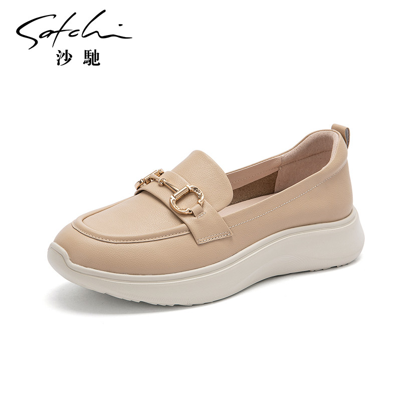 沙驰2026春季新款牛皮厚底乐福鞋,专为追求舒适与时尚的妈妈群体设计。采用优质牛皮材质,柔软透气,贴合脚型;深口设计穿脱便捷,厚底轻盈缓震,久走不累。简约乐福鞋型搭配经典金属扣饰,优雅大方,轻松驾驭通勤、休闲等多种场合。内里亲肤透气,防滑耐磨橡胶大底增强稳定性,兼顾安全与质感。无论是日常出行还是职场穿搭,都能展现从容气质。沙驰以匠心工艺打造舒适体验,让每一步都自在安心,是送给妈妈或自用的高品质之选。