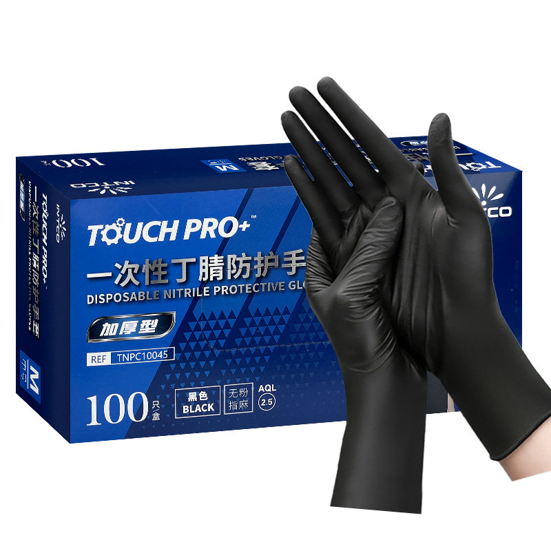 天猫英科医疗一次性丁腈睛手套黑色食品级防水耐磨烧烤橡胶劳保特厚