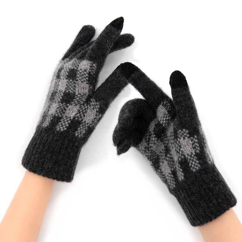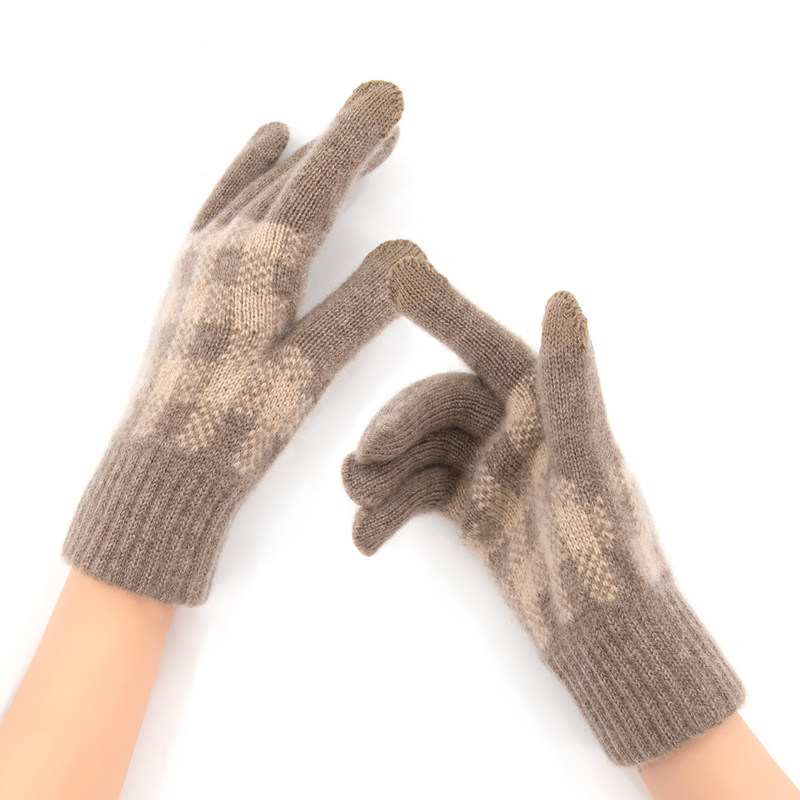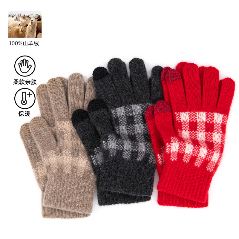 100%纯羊绒触屏手套分指男女情侣秋冬季保暖针织开车