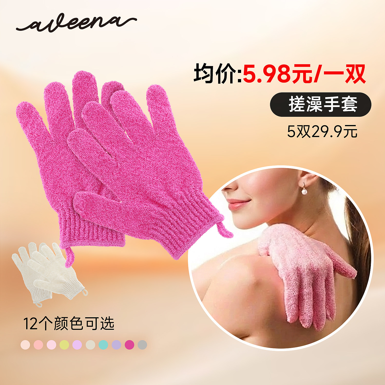 淘宝香港Aveena雅奈五指搓澡手套按摩起泡去角质双面磨砂搓背搓澡巾