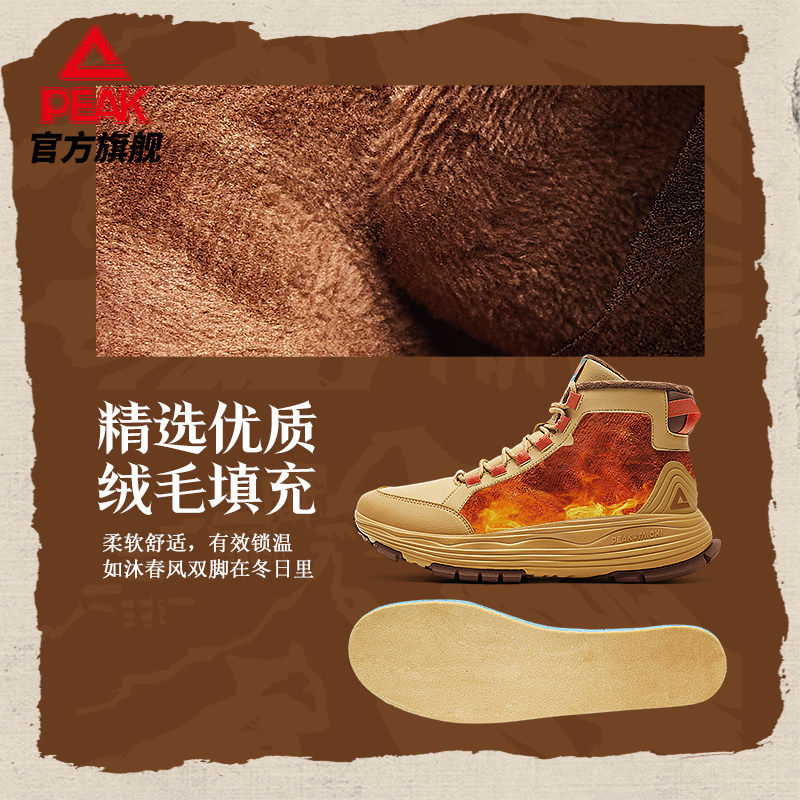 匹克态极千峰灵狐户外保暖棉鞋是2023秋冬推出的高性能徒步登山鞋,专为户外爱好者打造。采用态极科技中底,自适应缓震回弹,久走不累;鞋面融合防风防水材质与保暖内里,有效抵御严寒与湿气,适应多变山地环境。大底搭载深齿防滑纹路,搭配高耐磨橡胶,湿滑路面依然稳健抓地。鞋头加强防护设计,兼顾安全性与舒适性。整体轻量包裹,贴合脚型,适合秋冬徒步、登山及日常户外出行。千峰灵狐系列以自然灵感为设计语言,兼具功能性与潮流感,是男士户外保暖防滑的理想之选。