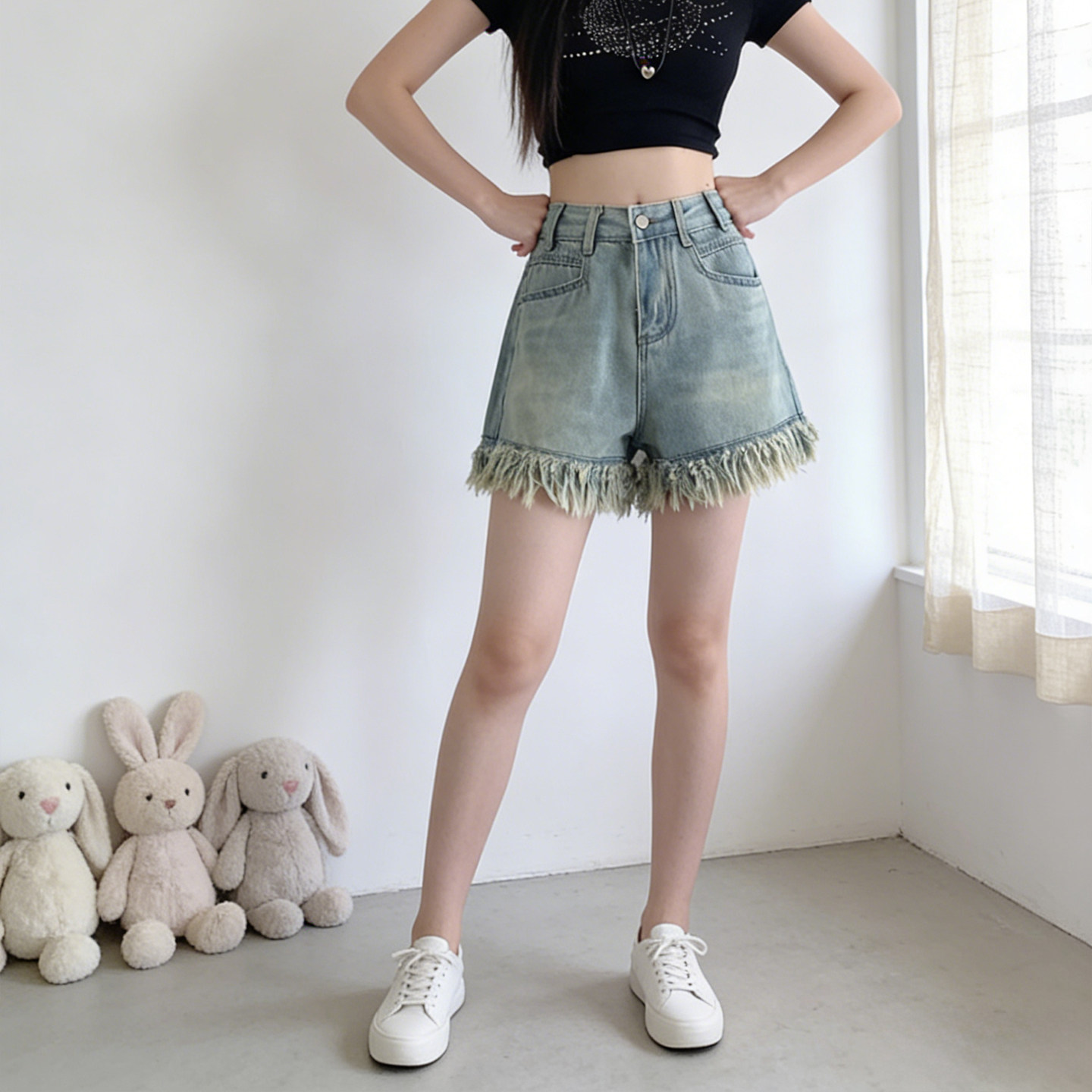 2026年夏季新款大码胖MM高腰毛边牛仔短裤,专为追求舒适与时尚的微胖女生设计。采用宽松A字版型搭配高腰剪裁,巧妙修饰腰腹线条,视觉显瘦又拉长腿部比例。阔腿设计包容性强,轻松藏肉,行走间自在无束缚。精选柔软透气牛仔面料,毛边细节增添个性辣妹风,轻松打造夏日街头潮酷造型。无论是搭配短T、吊带还是衬衫,都能穿出慵懒又时髦的夏日氛围感,是微胖女生的夏日衣橱必备单品,舒适与颜值兼具,自信展现独特魅力。