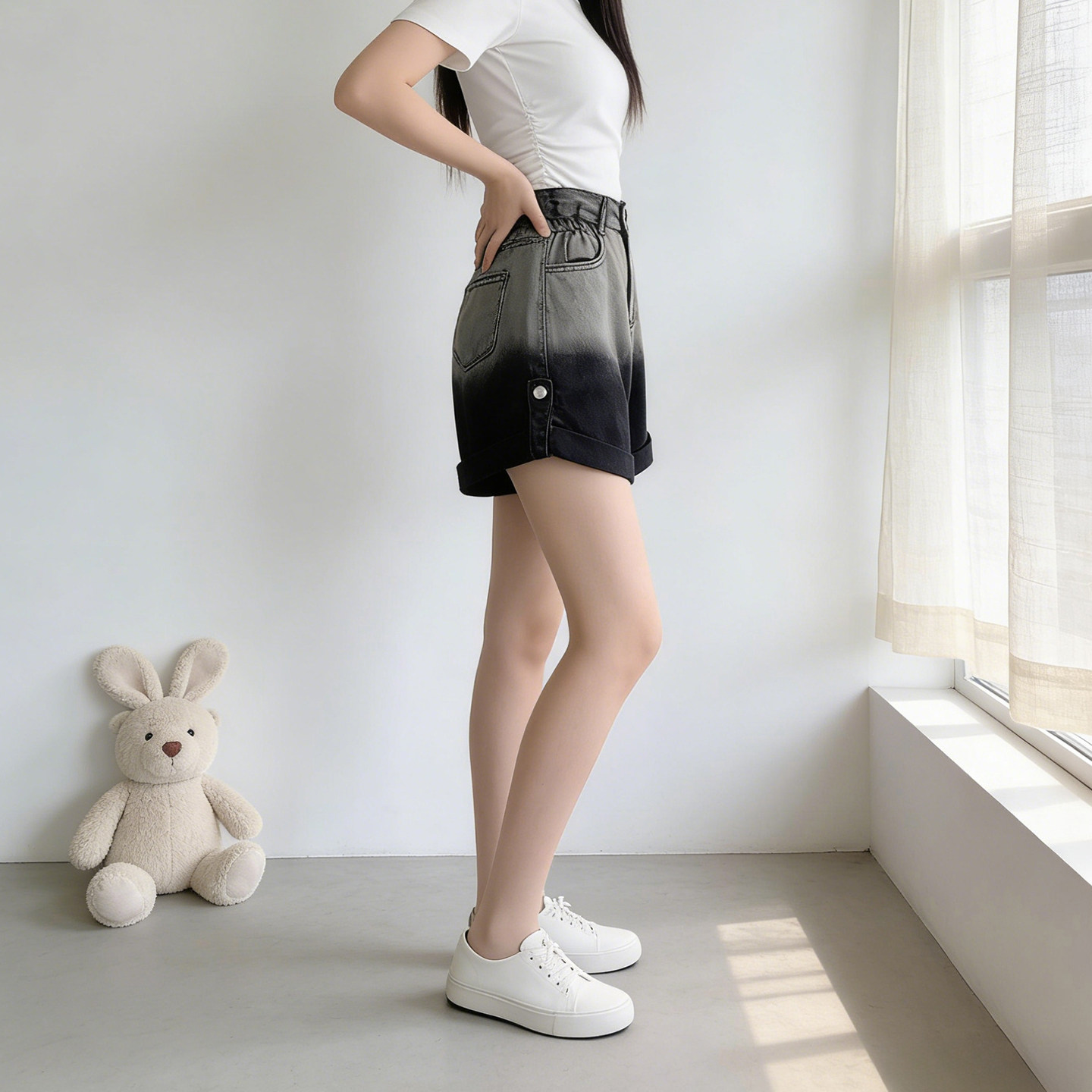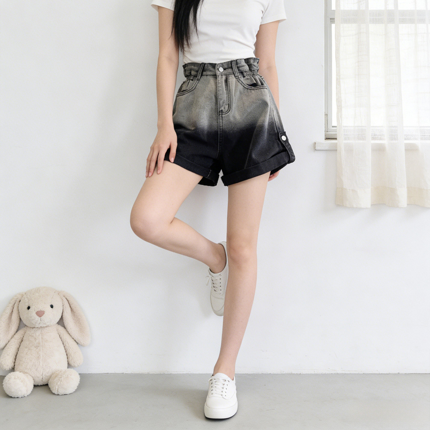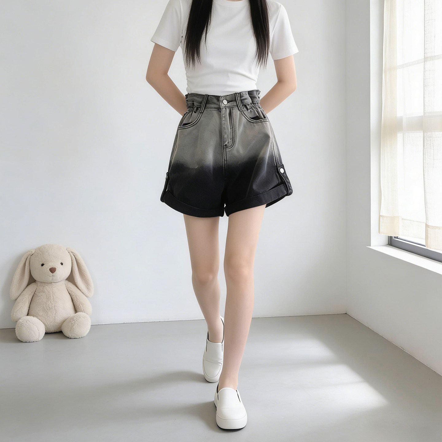 2026夏季新款大码胖MM专属美式渐变黑色高腰牛仔短裤,专为小个子女生设计,兼顾时尚与舒适。采用宽松A字版型,高腰剪裁有效拉长腿部线条,视觉显瘦又提臀。渐变黑色设计从深到浅自然过渡,增添层次感和美式街头风格,轻松搭配T恤或短上衣。精选柔软弹力牛仔面料,透气亲肤,活动自如,适合多种体型。侧边微喇或开衩细节更添动感,炎热夏季也能清爽出街。无论是日常穿搭还是度假出行,这款热裤都能让你自信展现魅力,舒适又时髦,是大码女生夏季衣橱的必备单品。