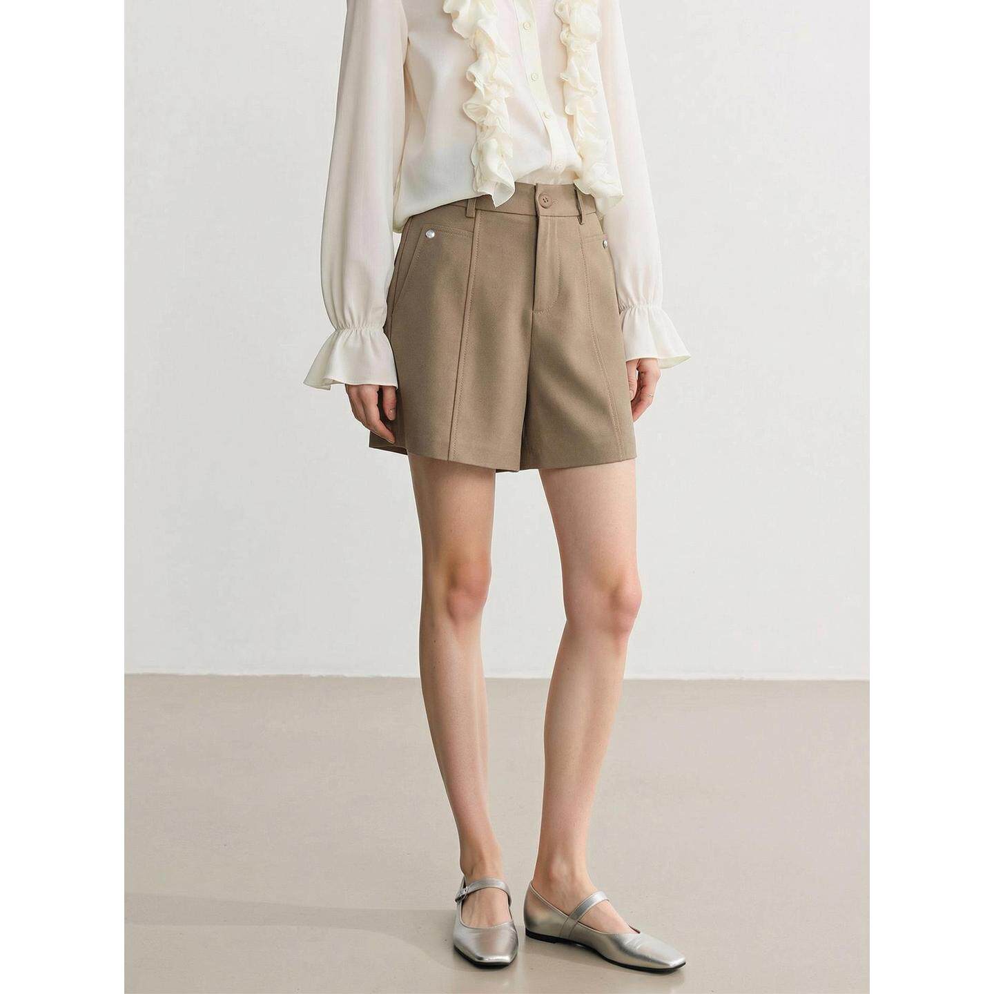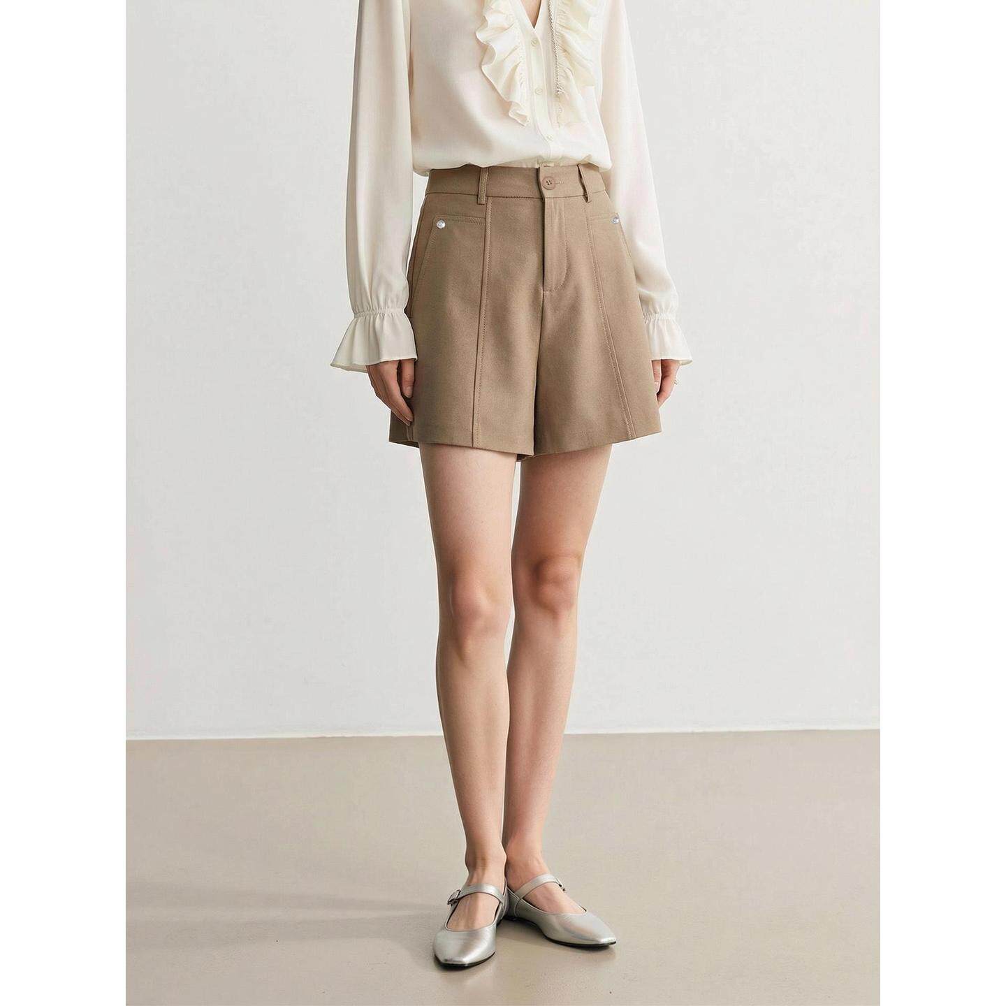 春夏黑色高腰西装短裤女 垂坠感A字阔腿裤 休闲百搭显瘦西装短裤