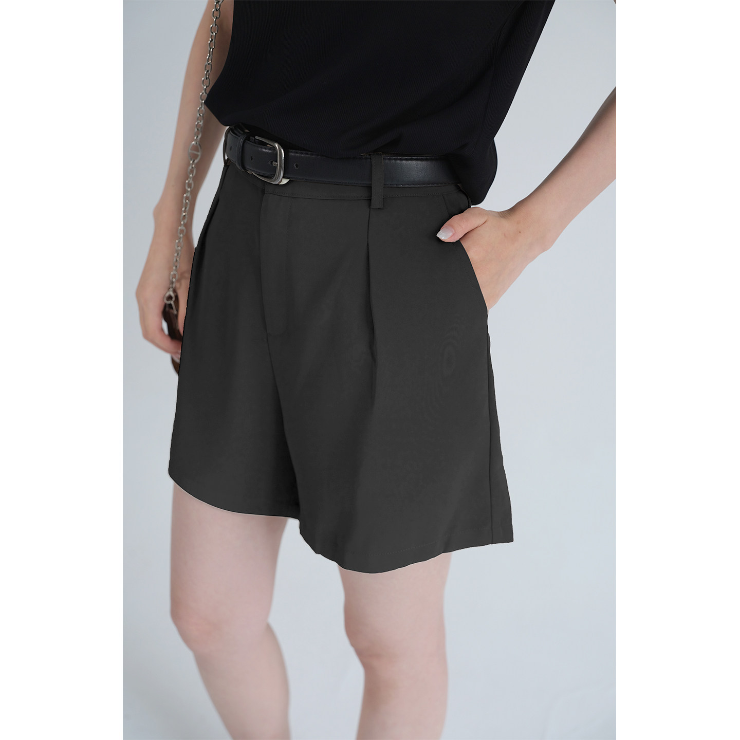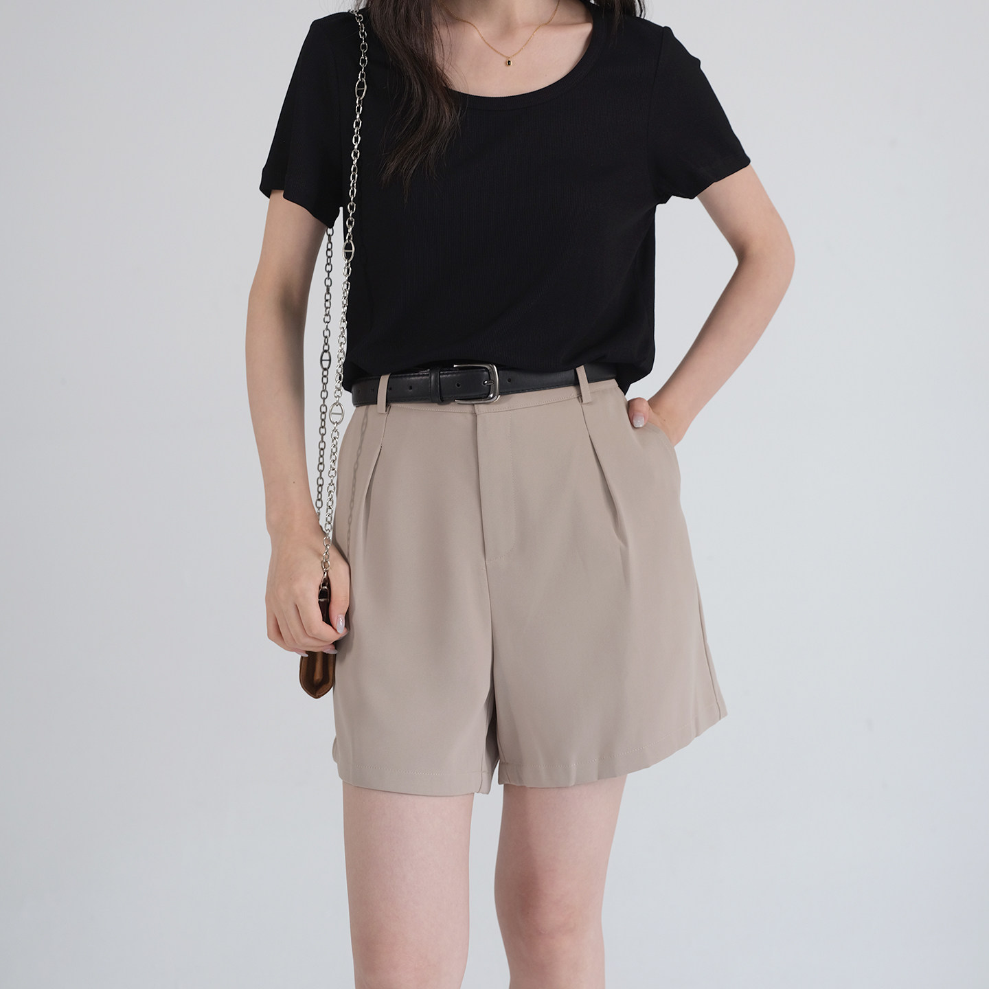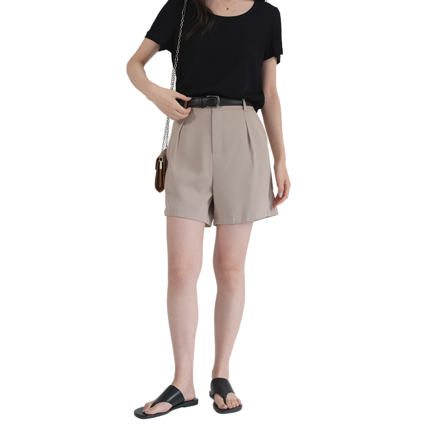 春夏黑色高腰西装短裤女 垂坠感A字阔腿裤 休闲百搭显瘦西装短裤