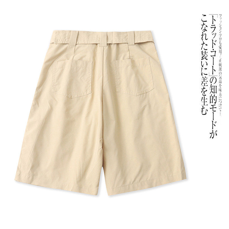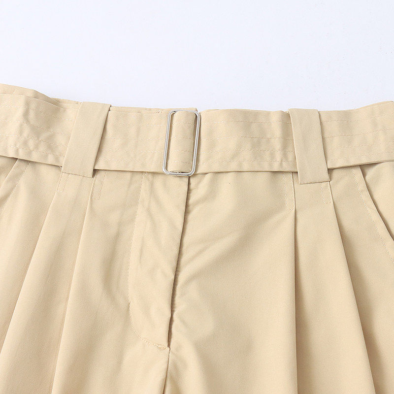 淘宝A9536外贸欧美单女士休闲短裤新款高腰腰带时尚显瘦阔腿裤五分裤