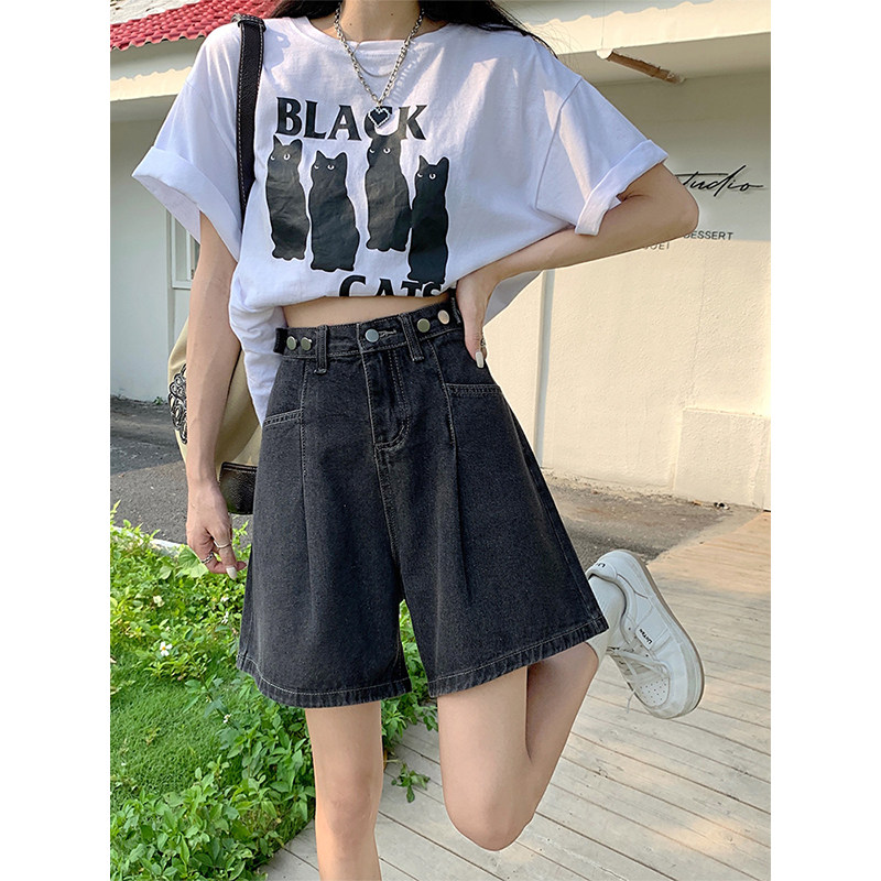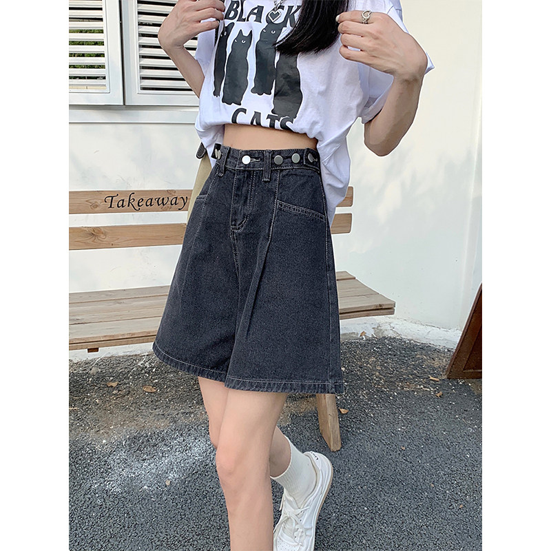 淘显腿长高腰运动短裤! 夏季洋气松紧腰纽扣百搭阔腿短裤 女