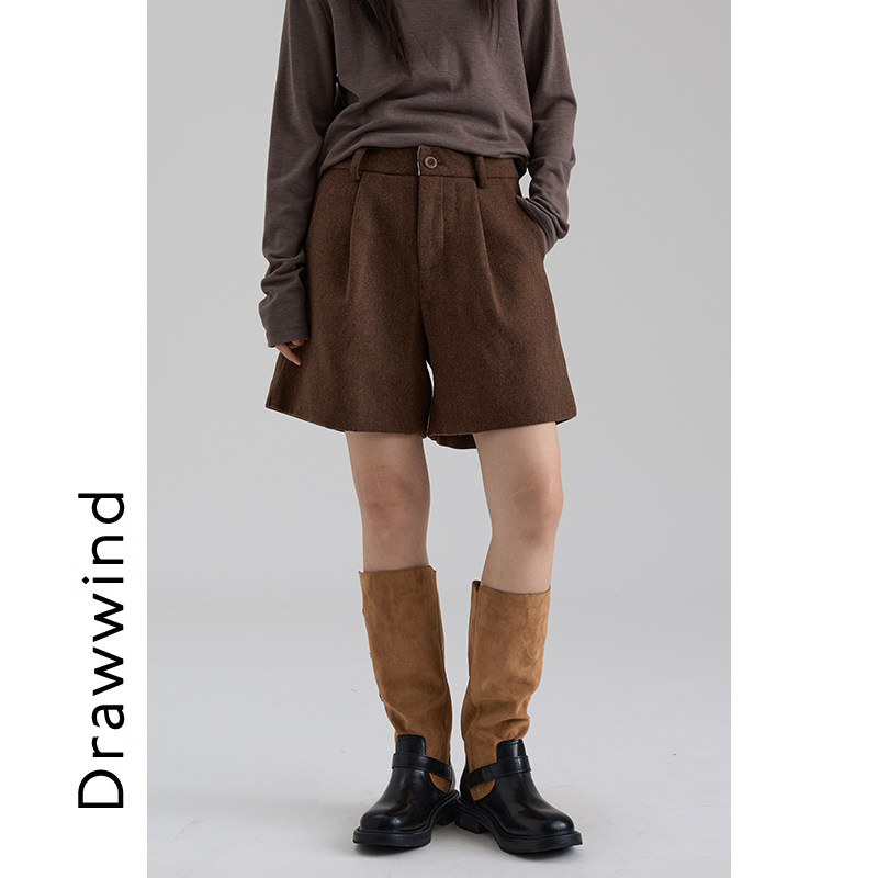 淘宝画风drawwind2025冬季新款气质羊毛短裤女款宽松直筒高腰显瘦靴裤