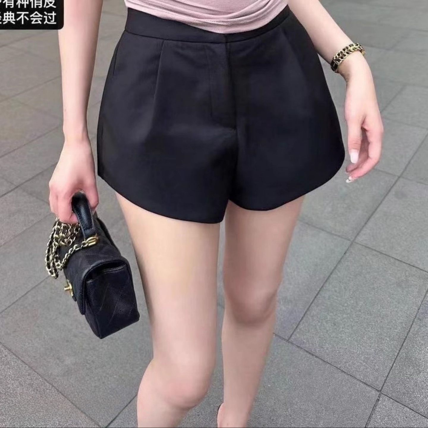 春夏黑色高腰西装短裤女 垂坠感A字阔腿裤 休闲百搭显瘦西装短裤