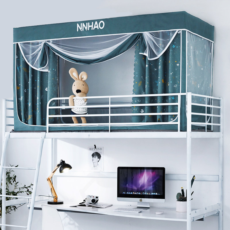 天猫宿舍床帘蚊帐一体式学生寝室遮光上铺下铺通用上下床四开门带支架