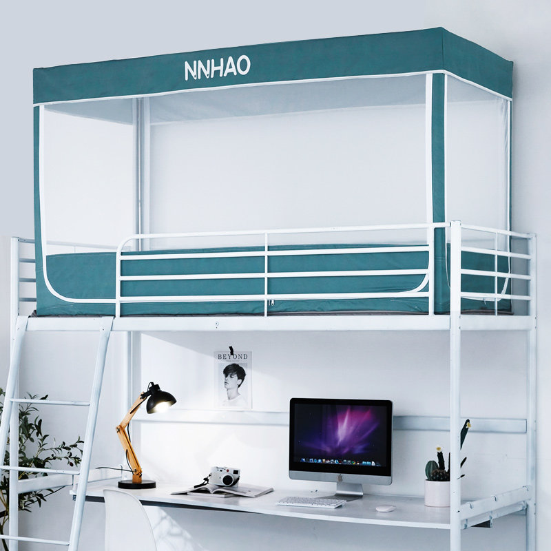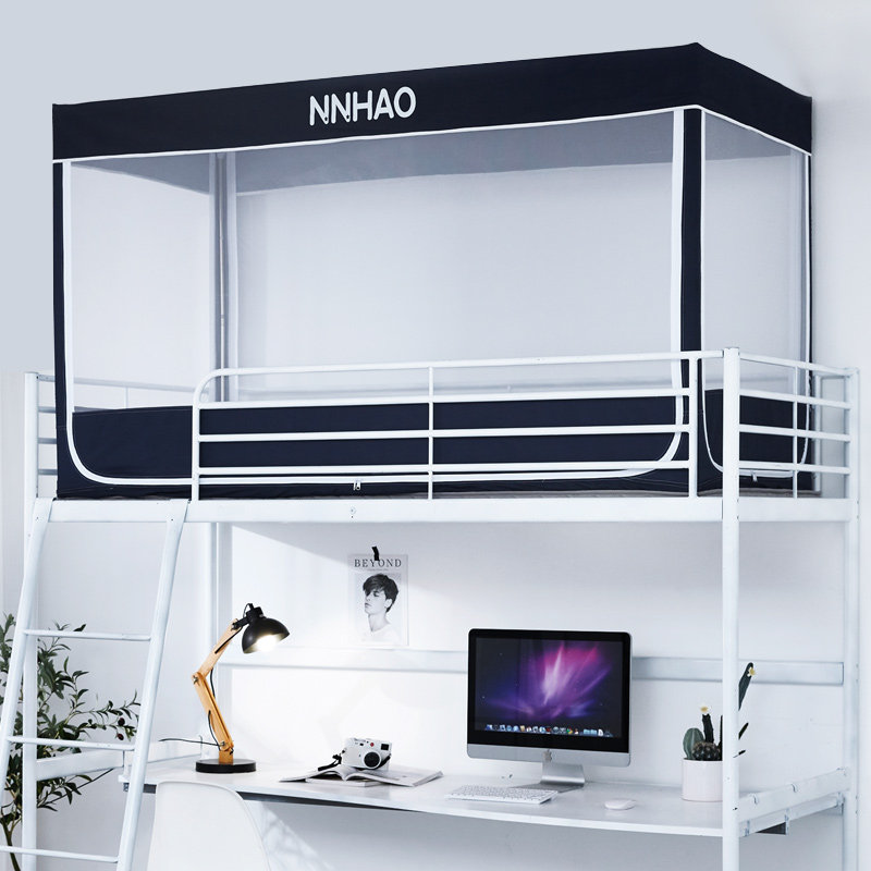淘学生宿舍蚊帐遮光床帘一体上铺上下铺男女通用床90寝室防尘带支架