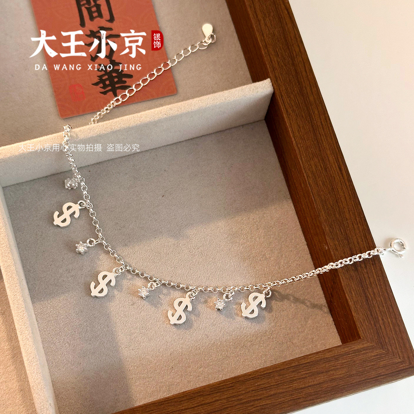 【大王小京】招财脚链,精选足银990材质打造,质感温润,佩戴舒适。简约而不失高级感的设计,融合传统招财寓意与现代时尚美学,适合日常搭配或特殊场合佩戴。细腻打磨工艺,光泽持久,细节彰显品质。链条轻盈贴合脚踝,点缀步伐间的优雅与灵动。无论是自用还是赠礼,皆显品味与心意。寓意财源广进、好运常伴,是追求品质生活与美好寓意的理想之选。大王小京,以匠心工艺诠释时尚与吉祥的完美结合。