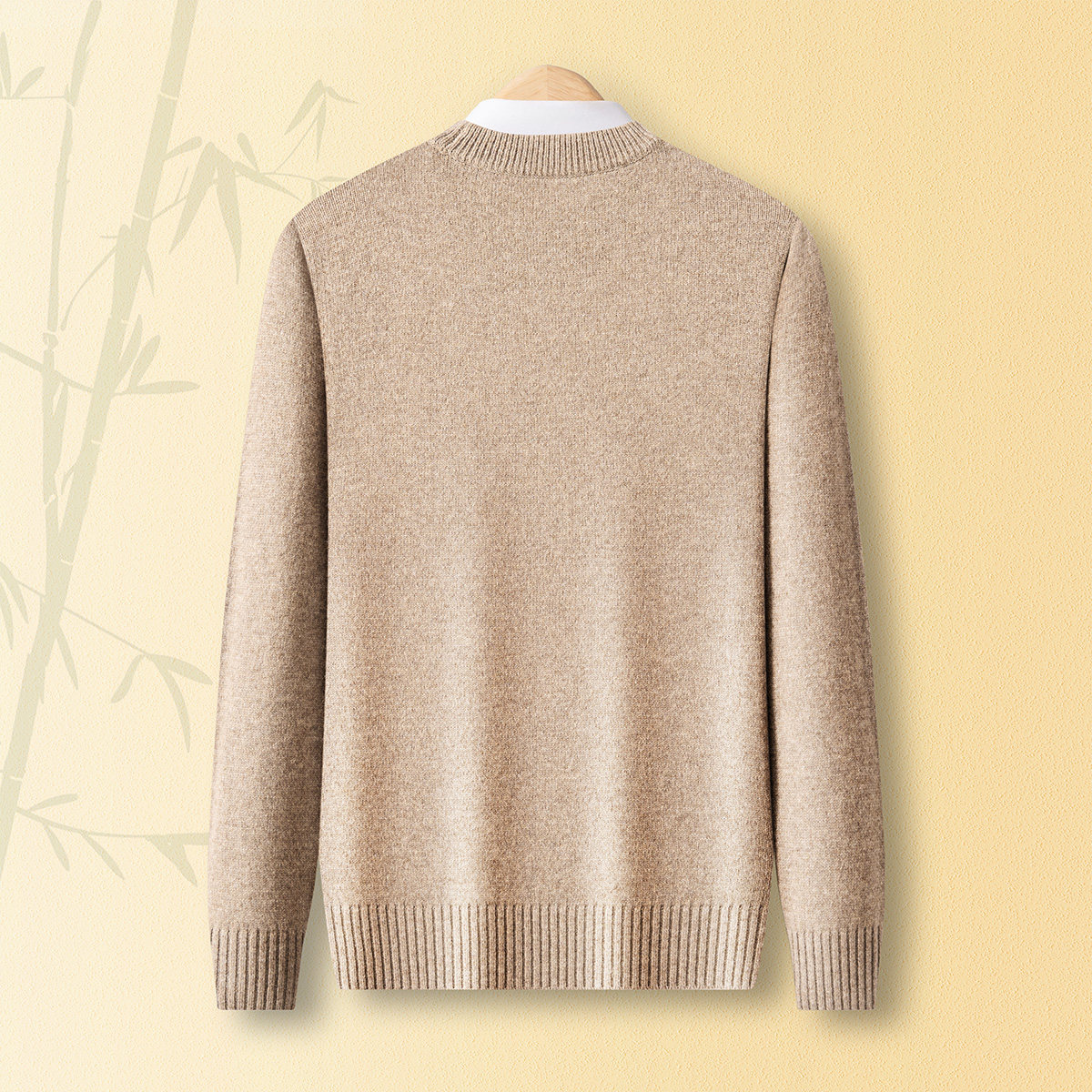 淘【商场同款】春竹100%羊毛26春季翻领假两件商务休闲保暖男羊毛衫
